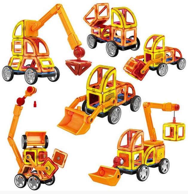 Уникальность каждого из элементов заключается в магнитных свойствах, которые создаются благодаря встроенным пластинам из магнита. Притягиваясь между собой, детали соединяются и удерживаются до тех пор, пока ребенок не проявит усилие и не разъединит их. Не смотря на такую простоту сборки с помощью магнитного конструктора можно создавать объемные поделки, строить сложные сооружения в 3D формате